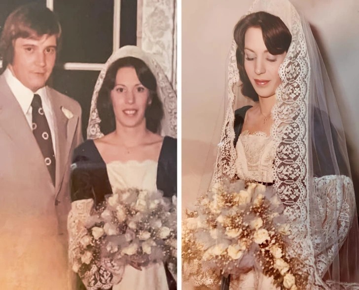 14. "Mój dziadek i moja babcia w dniu ich ślubu w 1953 roku. 32 lata później moja mama miała na sobie tę samą suknię na jej ślubie."