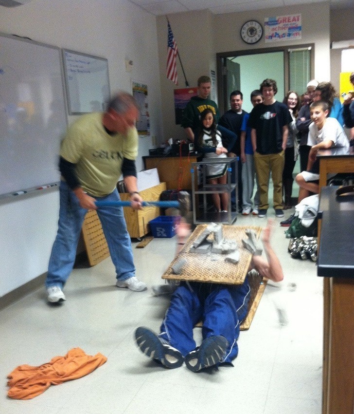Nauczyciele wiedzą, że najtrudniejszym elementem ich zawodu jest wzbudzenie zainteresowania uczniów swoim przedmiotem. Najlepsza metoda to wykorzystanie kreatywności i nieszablonowych pomysłów. Na przykład, udowodnienie, że nauka może zmienić zwyczajną osobę w superbohatera, który nawet nie poczuje uderzenia młotem, albo balansowanie krzesłem biurowym na podbródku.