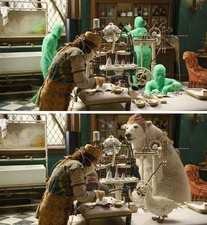 Patrząc na poniższe zdjęcia, do głowy przychodzi nam wyrażenie "magia filmu". Nie da się ukryć, że właśnie to słowo najlepiej oddaje niektóre wyczyny i efekty specjalne użyte, by tchnąć życie w nasze ulubione postacie i momenty. Oto jak prezentują się niektóre z nich w trakcie procesu tworzenia.