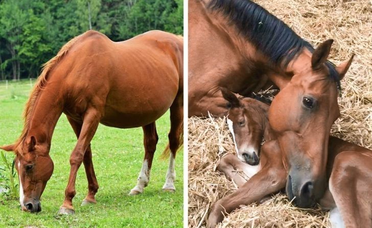 W momencie, w którym klacz jest gotowa do porodu, jej młode stanowi około 10% jej wagi. Oznacza to, że nowonarodzony źrebak może ważyć nawet 50 kg.