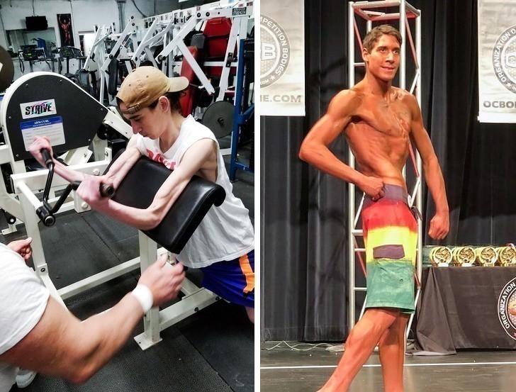 3. 22-letni Jared cierpi na raka płuc i mukowiscydozę. Postanowił on poprawić sylwetkę. Oto jak zmienił się w rok czasu.