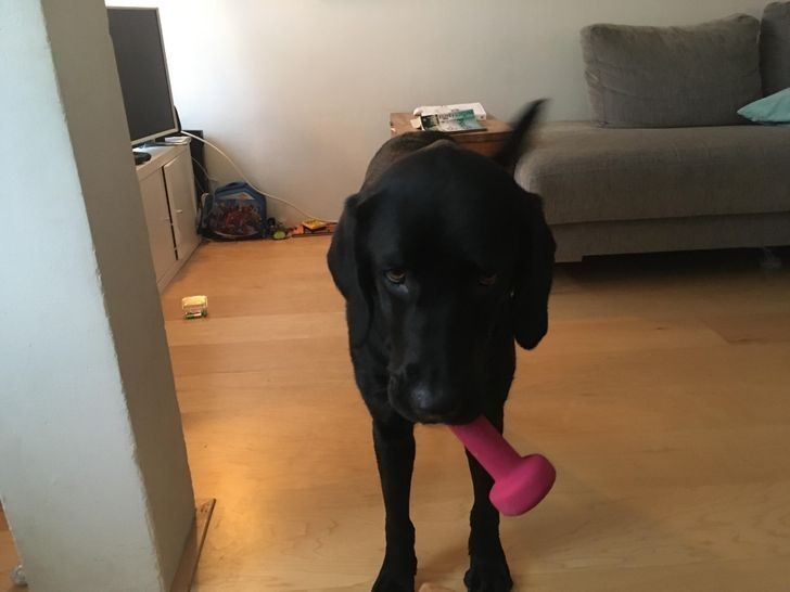 12. "Mój pies oglądał moje ćwiczenia tak wiele razy, że sam zaczął przynosić mi ciężarki."