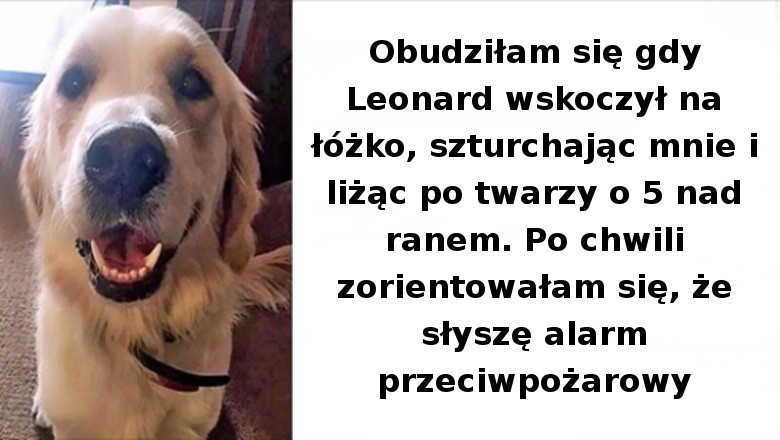 18. "Obudziłam się gdy Leonard wskoczył na łóżko, szturchając mnie i liżąc po twarzy o 5 nad ranem (nigdy tego nie robi). Po chwili zorientowałam się, że słyszę alarm przeciwpożarowy, a w przedpokoju unosi się dym."