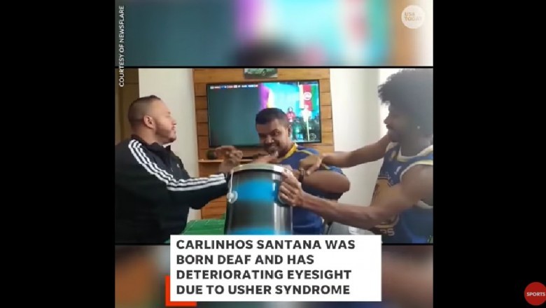 Nie chcę wyrokować, ale najprawdopodobniej kiedyś posiadał te zmysły, w chociażby lekkim stopniu. Sugeruje mi to trochę fakt, że osoba wykonująca gesty w drugiej części automatycznie używa również ruchu ust. Osoba będąca od urodzenia zarówno głucha, jak i ślepa niestety nie byłaby w stanie zrozumieć o co w ogóle chodzi i co robi. Bez wzroku i słuchu jedynym kontaktem z otoczeniem jest dotyk, a nim nie da się nic nauczyć. Także tego mężczyznę życie chyba pokarało później.